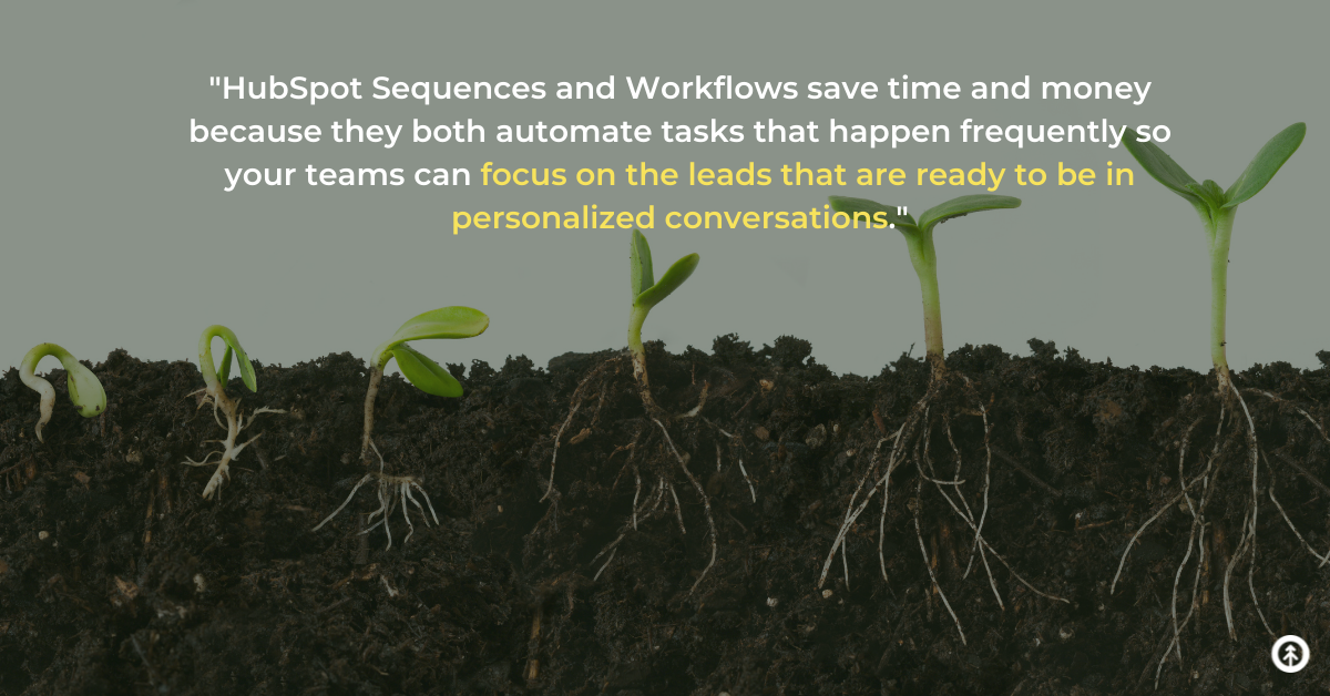 Sequences and Workflows save time and money for your teams because they both automate tasks that happen frequently–like website engagement–so that your teams can focus on the leads that are ready to be in personalized conversations.