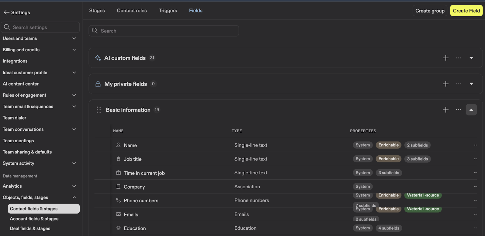 Apollo needs to recognize the same signal. Create matching Buyer Intent Prospecting Agent fields for contacts and accounts in Apollo, then sync them with the corresponding HubSpot properties. This ensures both platforms are speaking the same language and responding to the same triggers.