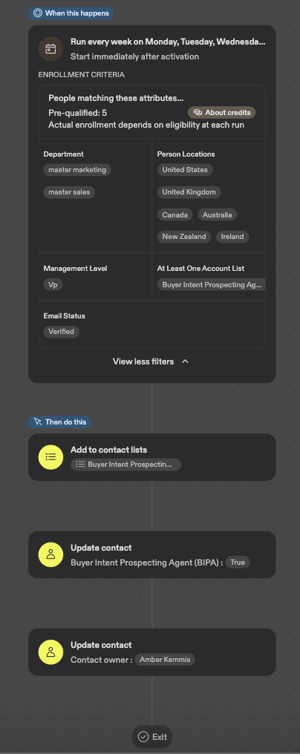 Create Contact list “Buyer Intent Prospecting Agent.”